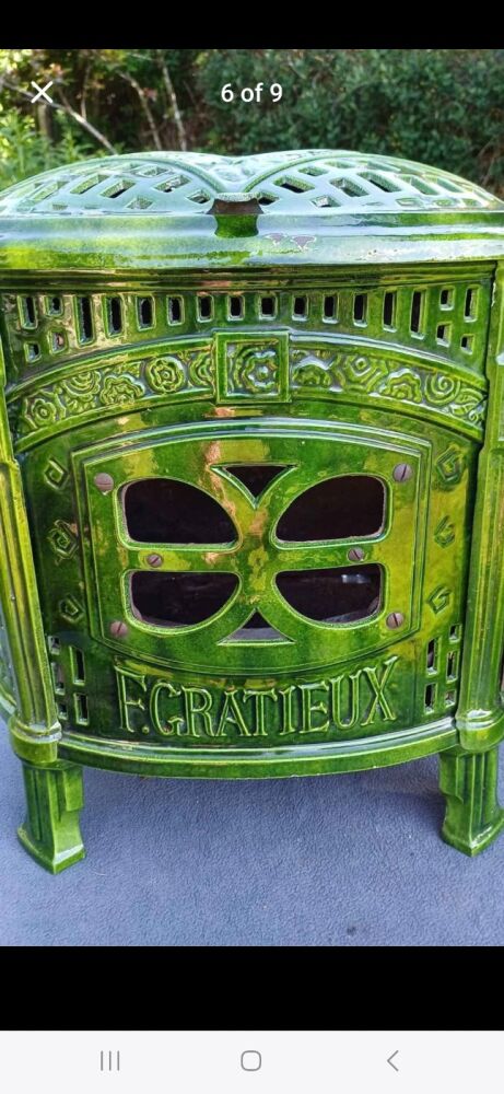 We are selling a range of beautiful, vintage cast iron stoves from France. They date from the 20s up to the 60s and reflect a wonderfully vibrant creative design culture from France, in that period. The designs and colours make these objects which are gorgeous and timeless. Often converted to bioethanol stoves now, these also make great light features.