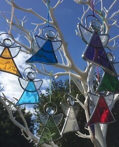 Decorative, copper-foiled stained glass made with modern, vintage and antique glass, created in my Staffordshire workshop.
