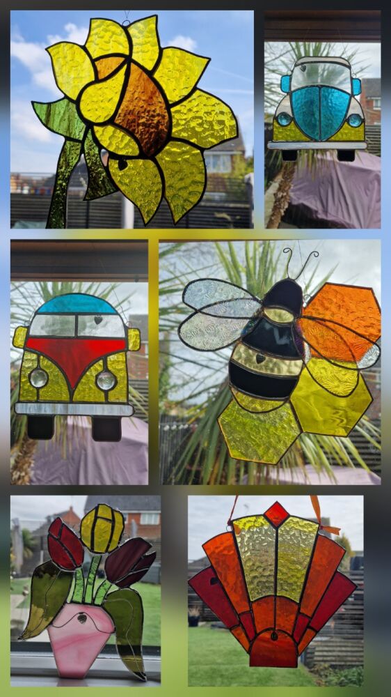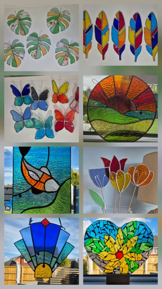 Handmade Glass Art & Suncatchers made using traditional techniques of Copperfoiling or Lead, adding colour to your home. Unique gifts/commissions can be made to order. Workshops on both the traditional techniques of copperfoiling or lead are held in Rugby. Stained glass window & Door Commissions welcomed. Now stocking a range of Sienna Glass balls, hearts & stands.