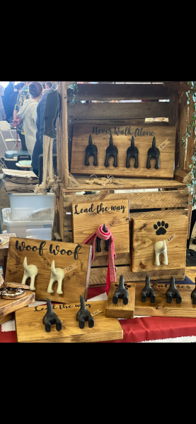 Beautiful handmade dog themed gifts made from reclaimed wood, recycled, organic, eco materials and grain free ingredients These include lead hangers, feeding stations, bandanas, hoodies, bags, treats and dog toys