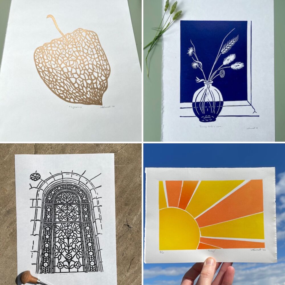 I create contemporary Linocut prints and cards. Each image is drawn and then carved from a piece of Lino, I then print each image individually using a hand press or by hand. As each print is printed individually each print has its own characteristics which is the lovely thing about Linocut printing.
