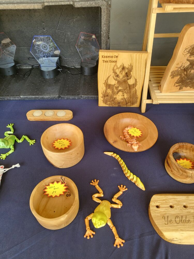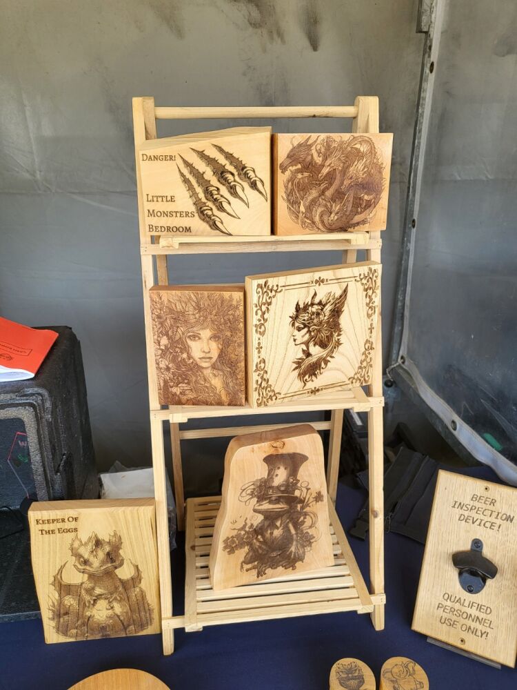 Hand made wooden items such as signs, plaques, keyrings, bottle openers, hand turned bowls, and other items. Many of our items are decorated with Pyrography. All of our bowls are food safe.