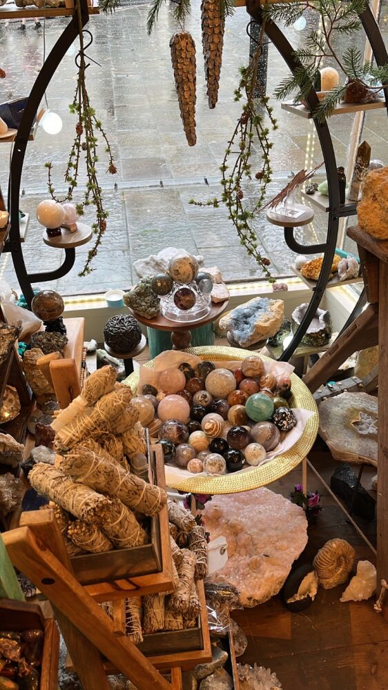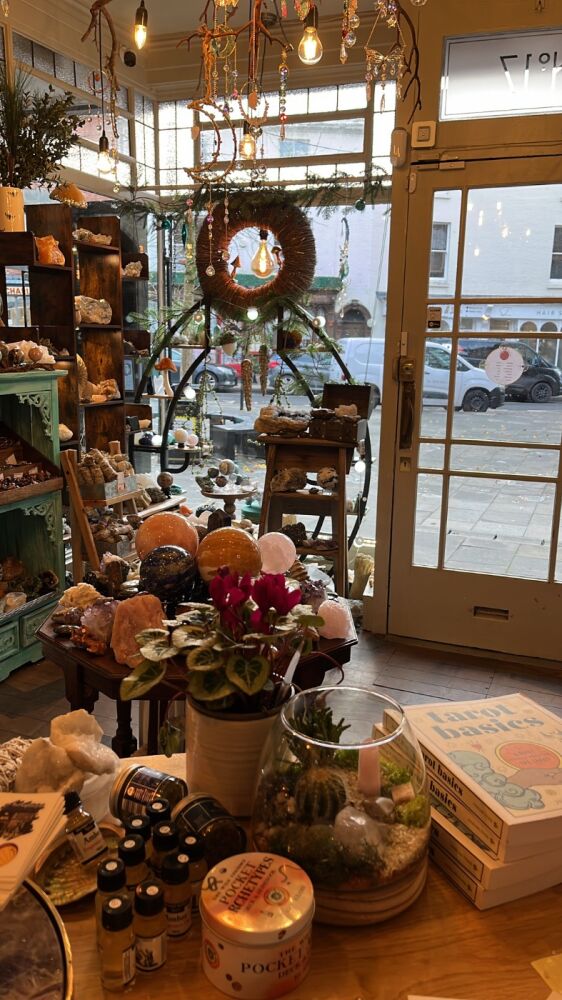Based at 17 Market Place in Warwick Behoptimystic holds a large variety of crystals, minerals and fossils. We also sell a range of associated goods such as books, incense, sage, journals, tarot cards, oracle cards and decorative items such as terrariums and suncatchers.