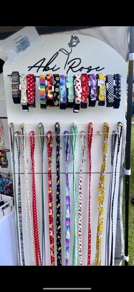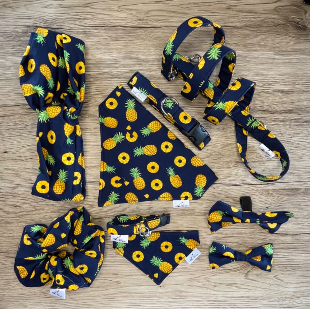 Handmade matching hair and pet accessories, including scrunchies, harnesses, collars, leads, bows and bandanas