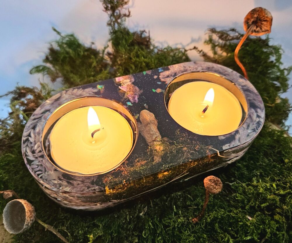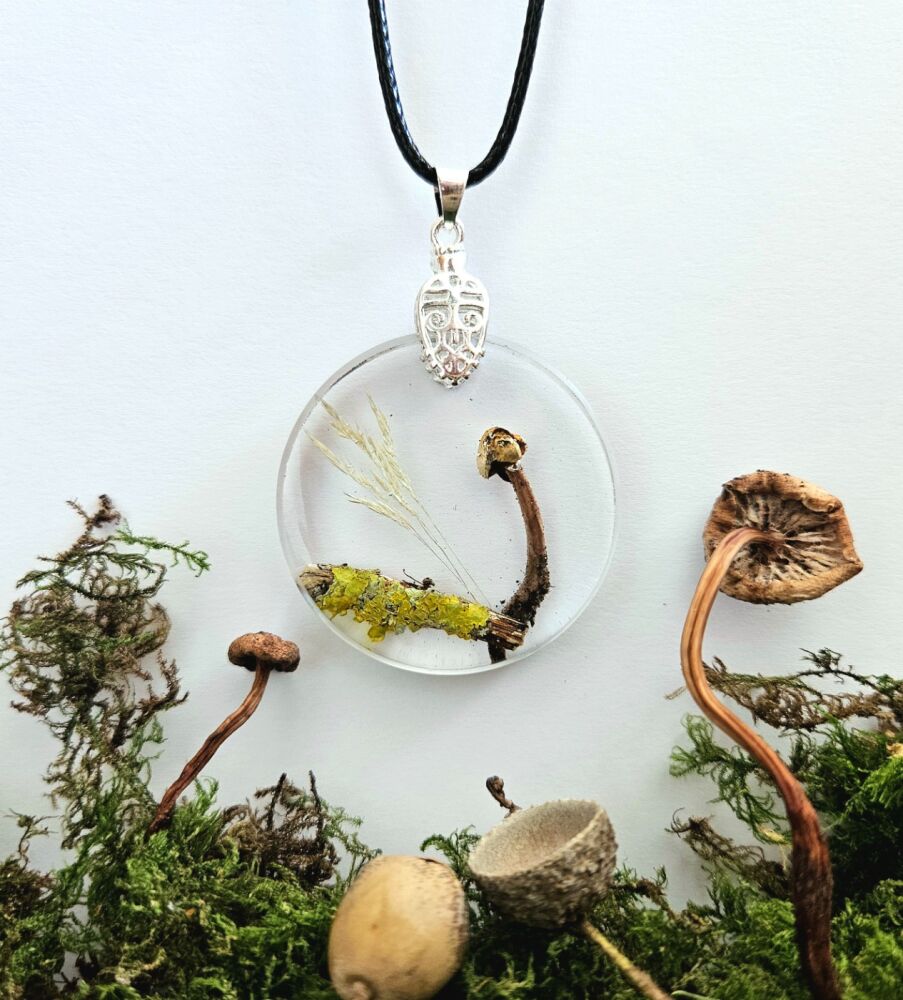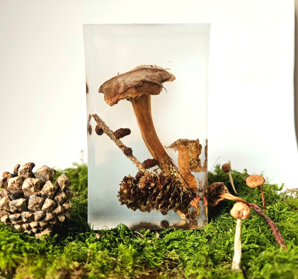 I make art and functional art with real foraged mushrooms and forest finds. I make jewellery, candle holders, wall art, mini preserved terrariums, pots and much more.
