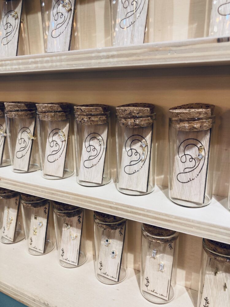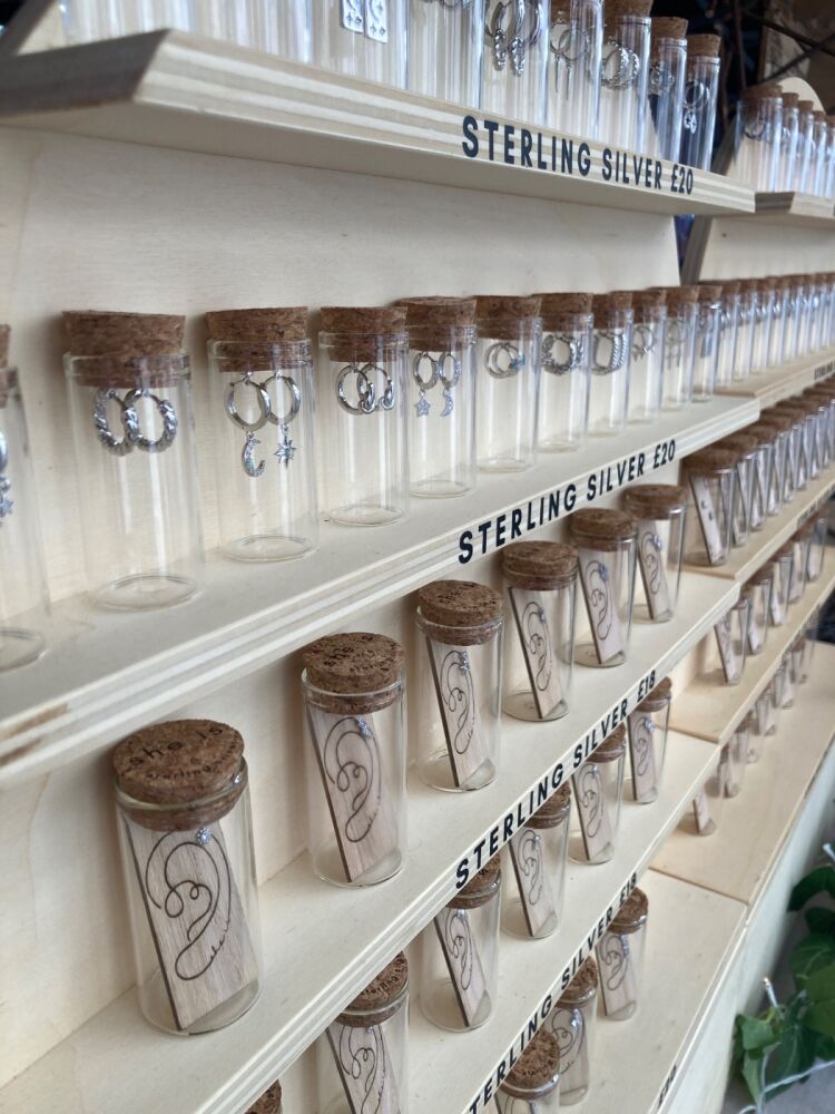 She Is Jewellery offers sterling silver huggie, stud and cartilage earrings, all presented in glass jars.