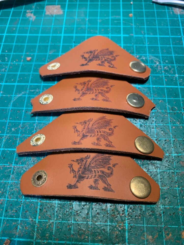 I make leather products by hand, it started when I needed a cover for my racing axe and it’s grown from there. I buy my leather from a sofa factory in the West Midlands or am gifted it or from a seller in Birmingham.