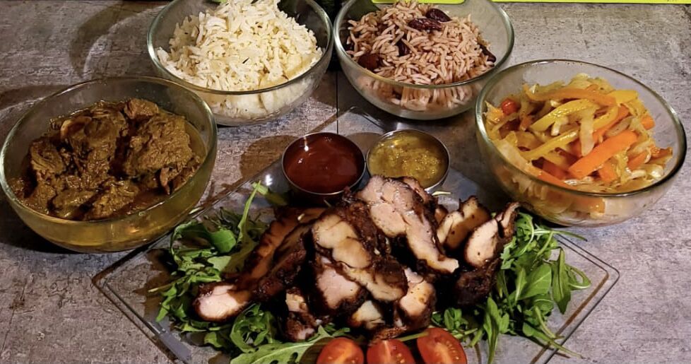 Our authentic Jamaican jerk is acclaimed up and down the country wherever we trade. We jerk chicken off the bone, pork and sea bass. These come as meals with our signature rice and peas, coleslaw and mixed salad. Our jerk chicken and pork come in wraps also. We sell curried mutton and a delicious vegan vegetable curry. Our peppered steak is succulent and tasty. Extras include fried dumplings, fried plantain, sweet potato cries and cassava fries.