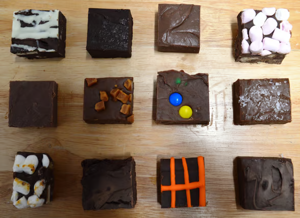 We offer chocolate based fudge, vegan fudge, fudge lollipops, fudge hot chocolate stirrers, fudge sauce, fudge scented candles and wax melts (these can be removed from sale if necessary) as well as traditional sweet treats like Scottish tablet, fudge rocky road and traditional fudge.