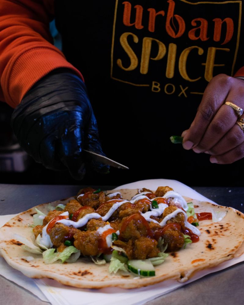 Urban Spice Box are a husband and wife team "Vick" who is the chef is born and bred in Punjabi, he has the magic in his hands, wifey "Satnam" is the urban brummie who adds a twist to it all. We offer a range of urban Punjabi flavours to get all those taste buds dancing. Our simple yet lip smacking menu has something for everyone from; naanwiches, rice boxes to salad boxes so depending on how hungry you are we got you covered. All you have to do is pick a base from from naan, rice or salad and choose a vegan, veg or meaty delicious topping!