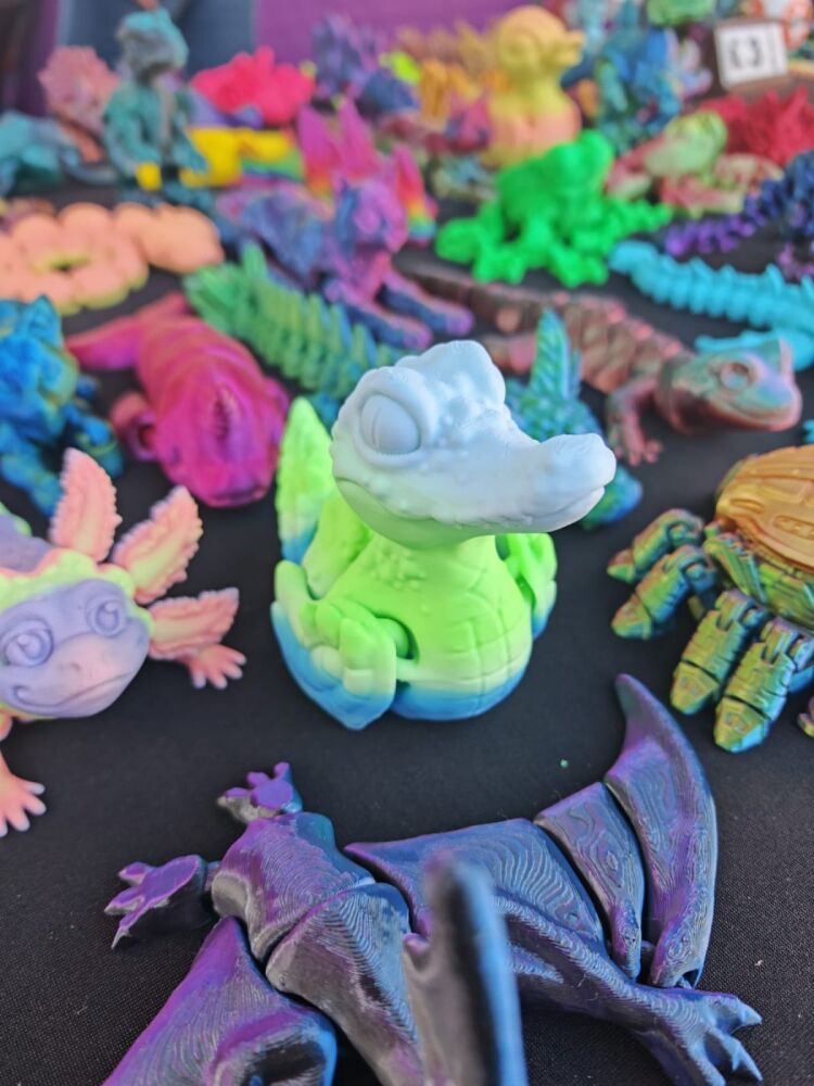 3D printed items eg: fidgets, articulated animals/dragons, statues, keyrings and models.