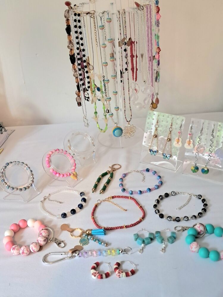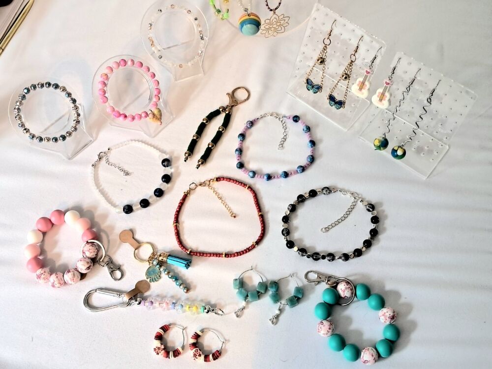 Making all kinds of beaded accessories like bracelets, necklaces, anklets, earring s, keyrings, pens and more!