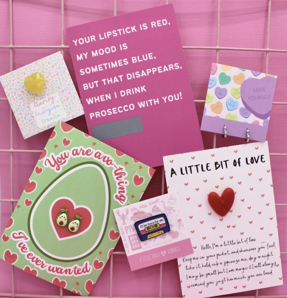 I design all the backing cards for pins, keychains, earrings, keepsakes, bracelets etc. All of my gifts are thoughtful and unique, perfect to send and gift or keep for themselves!