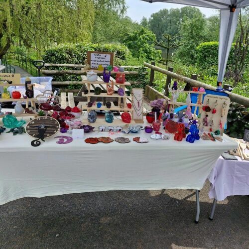 Quirky resin figures, earrings and necklaces. Keyrings. Coasters.