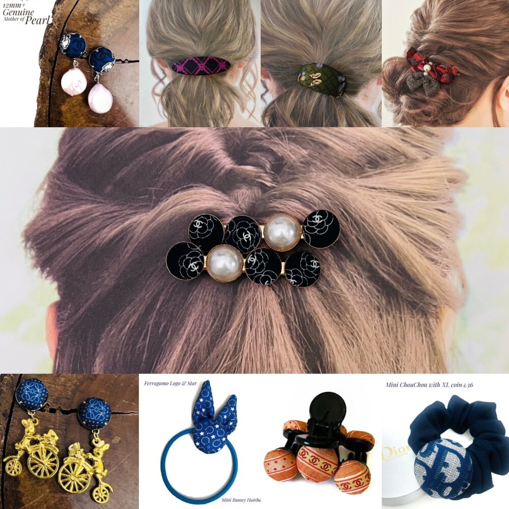 upcycled handmade hair piece & accessories made only with authentic designer's vintage silk scarf & tie, as I love the vintage Chanel scarf so much and would love to preserve the beauty and heritage of this classical and timeless beauty by upcycling ones that are worn out from love.