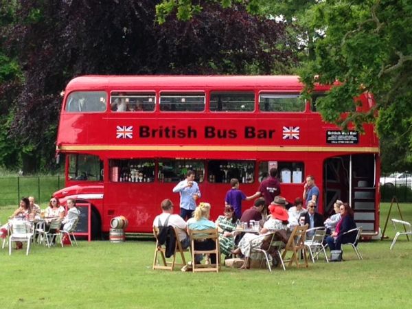 A 1963 Routemaster London Bus converted into a bar selling alcoholic beverages and soft drinks