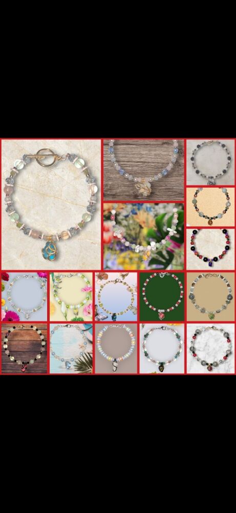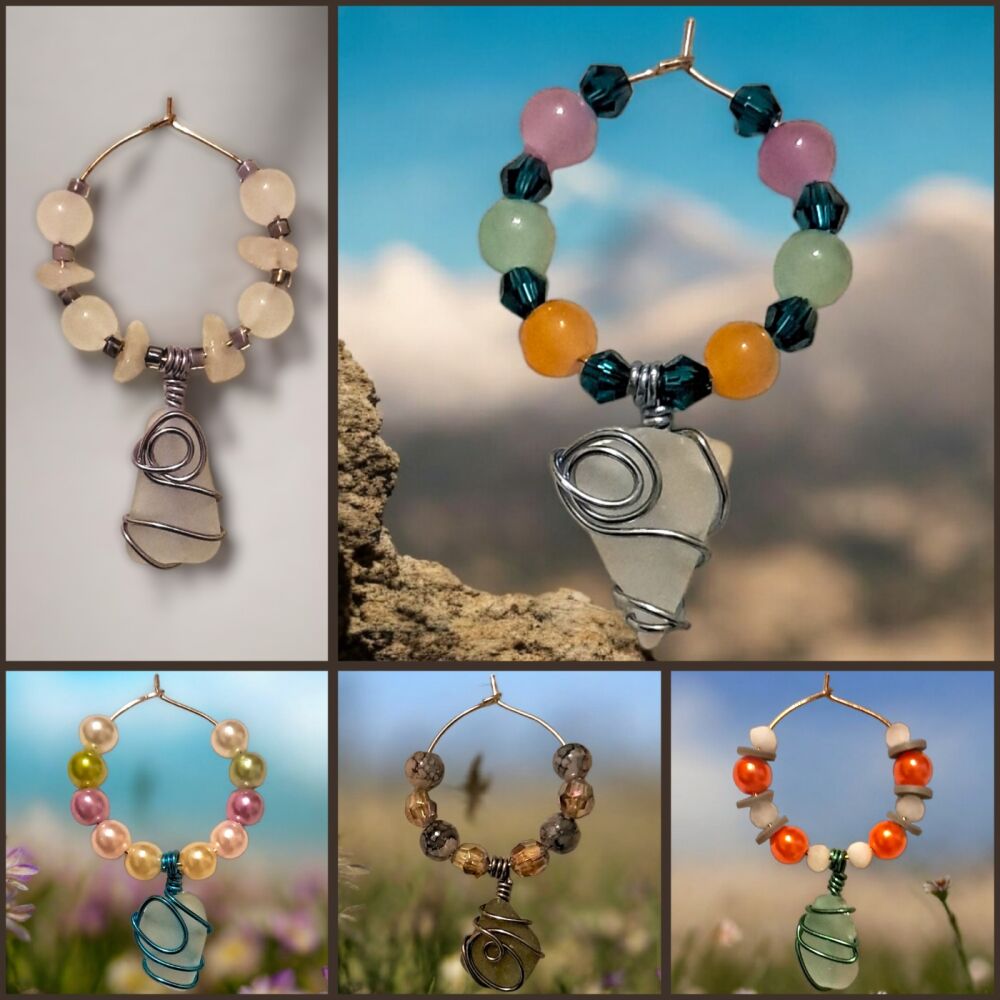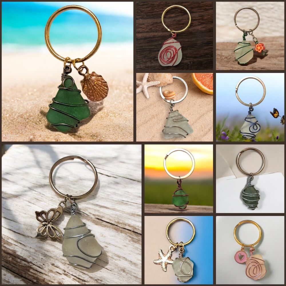 I sell handmade bracelets, necklaces, earrings, keyrings and wine glass charms with wire wrapped sea glass charm pendants.