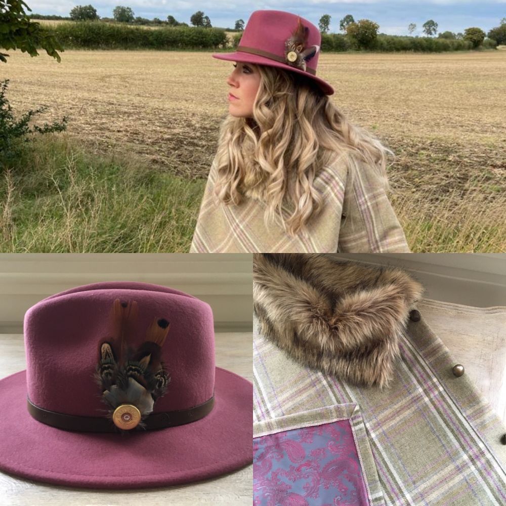 Handmade British Tweed Capes,fedora hats ,pheasant feather brooches ,cashmere scarves