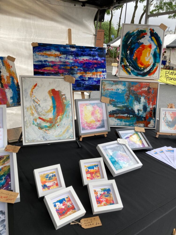 A Birmingham based mainly abstract artist, Clare creates all her own pieces, from acrylics on canvas, mixed media, framed and unframed digital prints of work, along with greetings cards and gift pieces. Clare’s paintings are full of colour and texture to bring a splash of vibrancy to anyone who owns it!