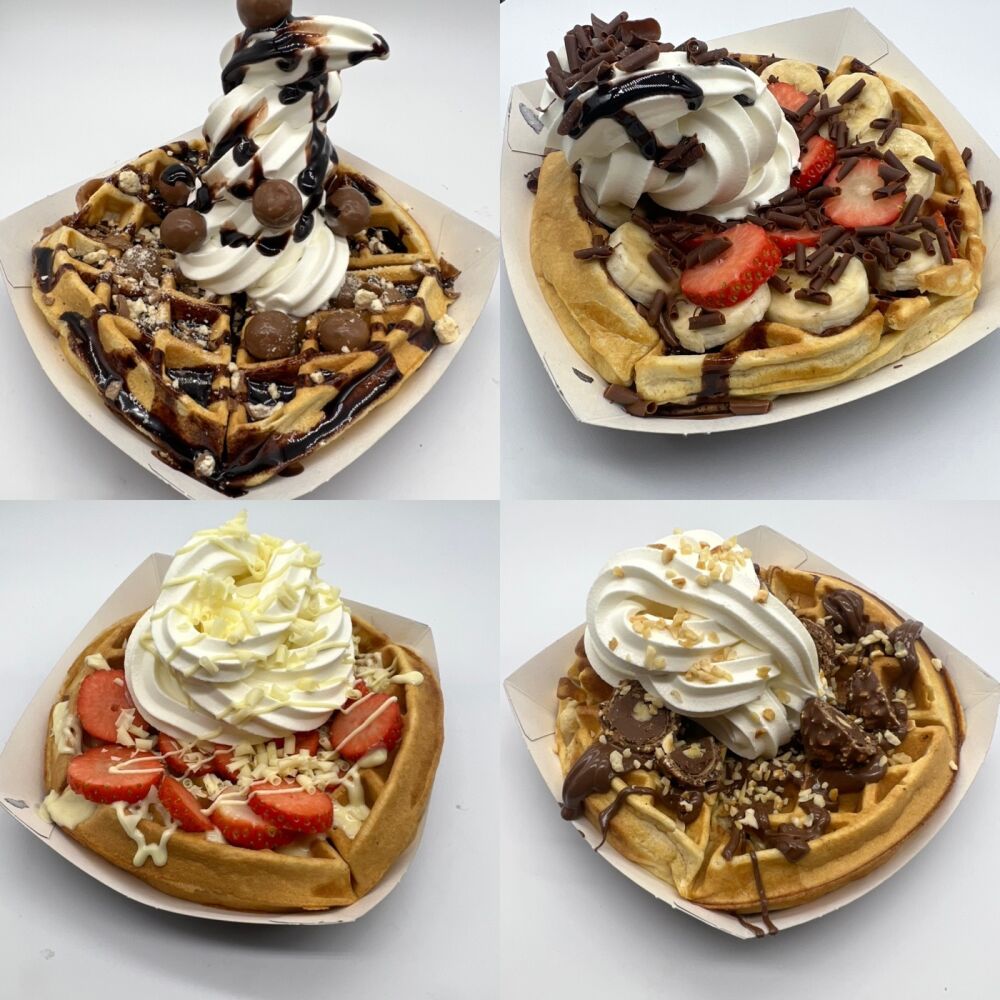 Belgian wafffles with ice carem and all the toppings