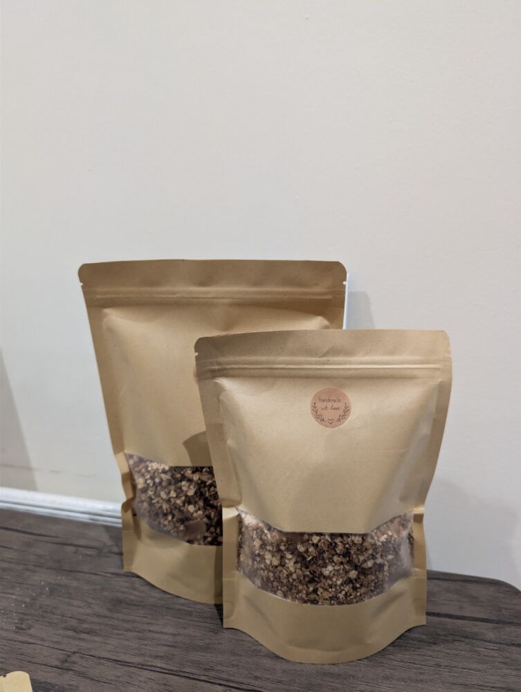 Our granola is made with rolled oats, seeds, nuts, quinoa, dark chocolate, plant protein and natural flavourings, gently toasted for flavour and texture. Each batch is prepared in small quantities to maintain quality and freshness. Our focus was on reducing added sugar, boosting protein and fibre, and keeping the ingredient list simple, without unnecessary additives.