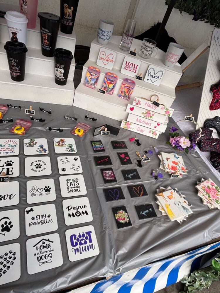 A wide range of products, handmade crafts and gifts at affordable prices to suit everyone. On top of the many parts of the crafting world we work in…We can also make many of our crafts for occasions and personalised orders. We make plaques, coaster, glasses, cups, Signs, cards and other items. We also sell other pocket money items which include hair accessories, keyrings, toys and much more.
