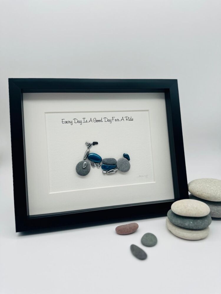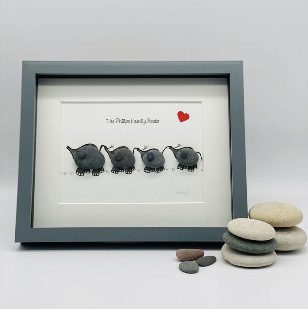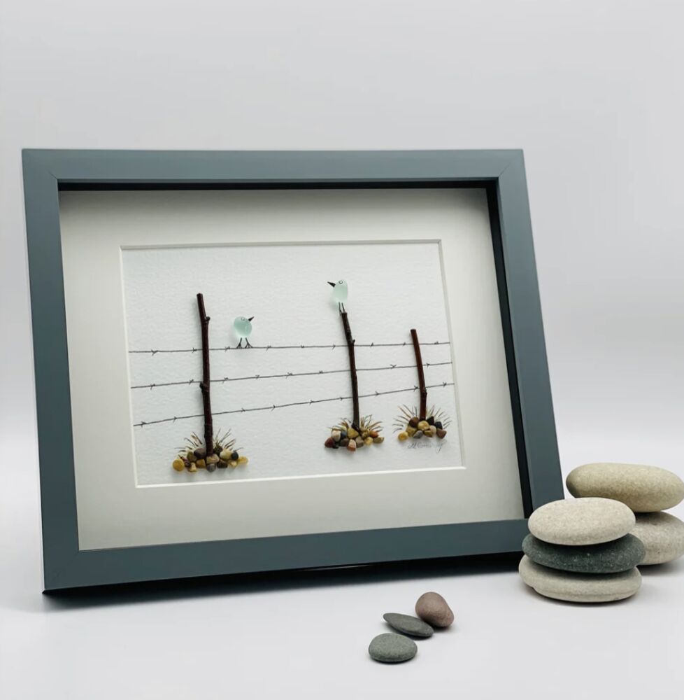 Beautiful hand made pebble and seaglass art and greetings cards.