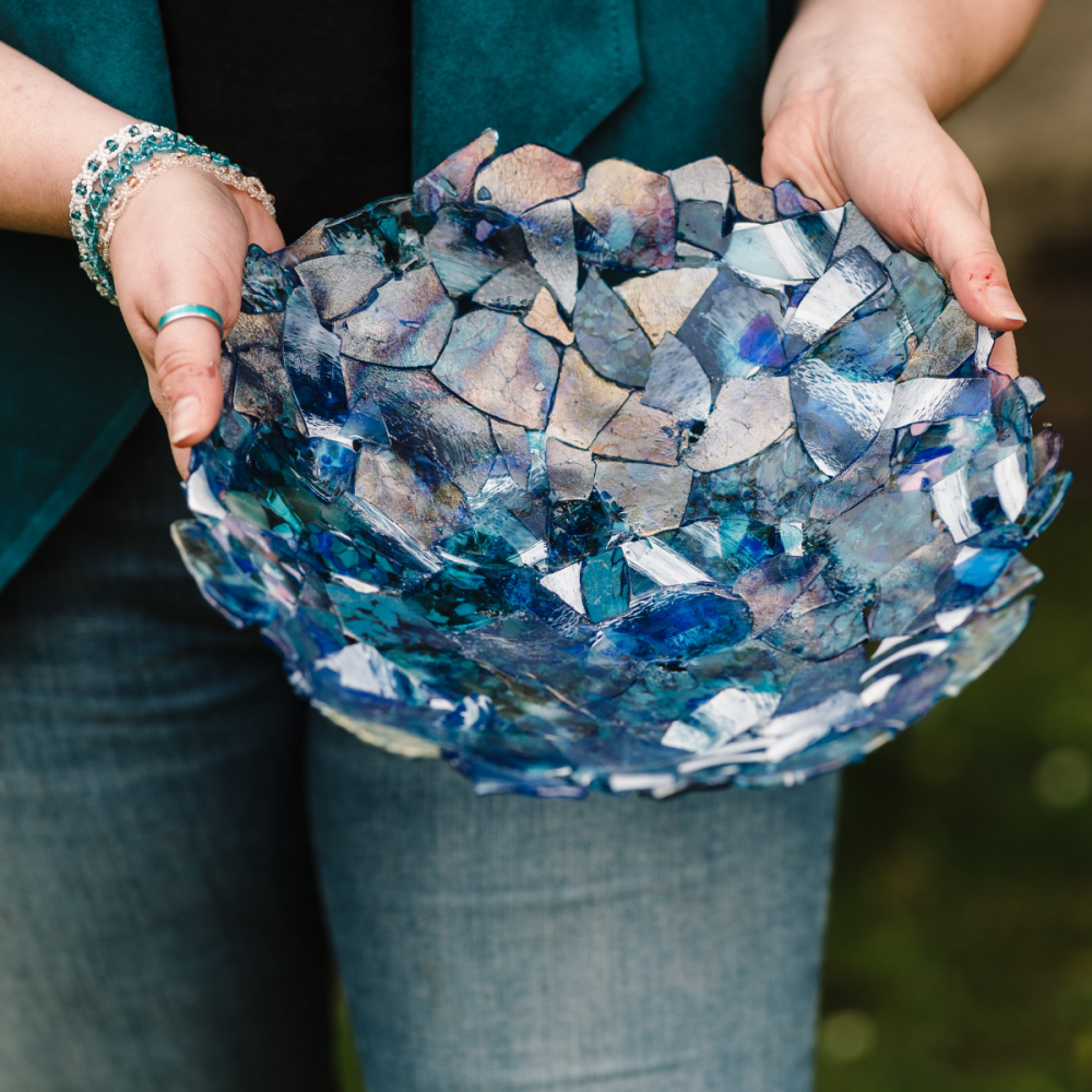 Melissa Keskinkilinc is a glass and enamel artist, teacher and art psychotherapist. She creates handmade decorative yet functional fused, blown and cast glass to add colour to any space. Inspired by nature, each piece is designed and created by hand. Her work is bright and colourful, and she loves to make work that will make people smile.