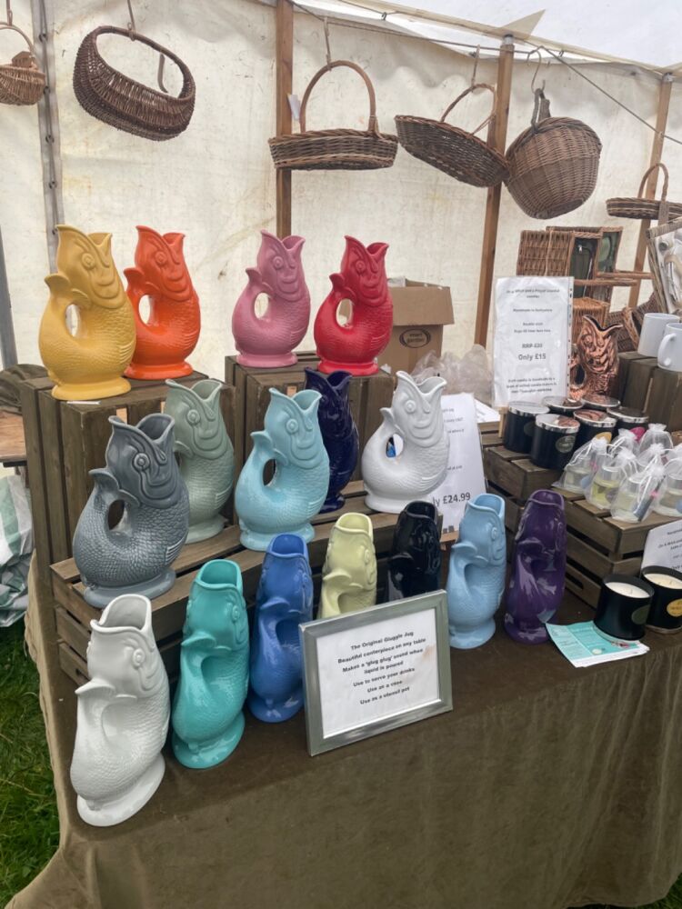 Handmade in England Gluggle jugs, a Victorian water decanter which Glugs when water is poured.
