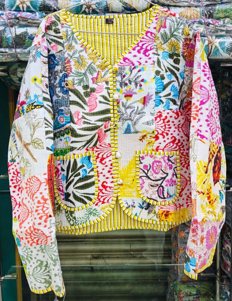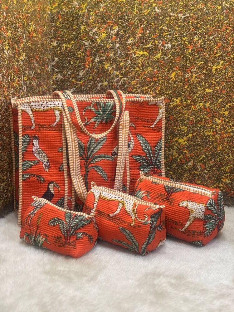 Hand block printed quilted jackets/bags/washbags