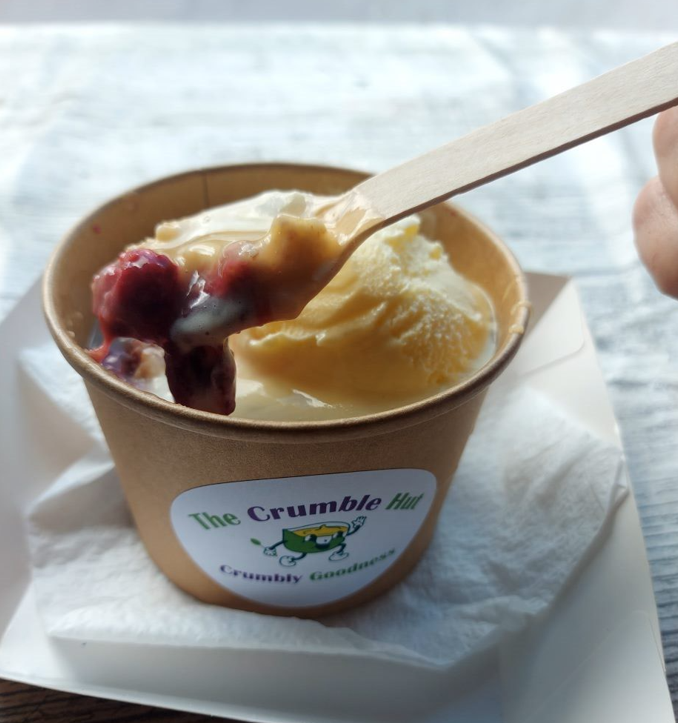 We also have our hot fruit crumbles (apple, rhubarb, mixed berry pear) served with topping eg custard, this is under Our Crumble Hut