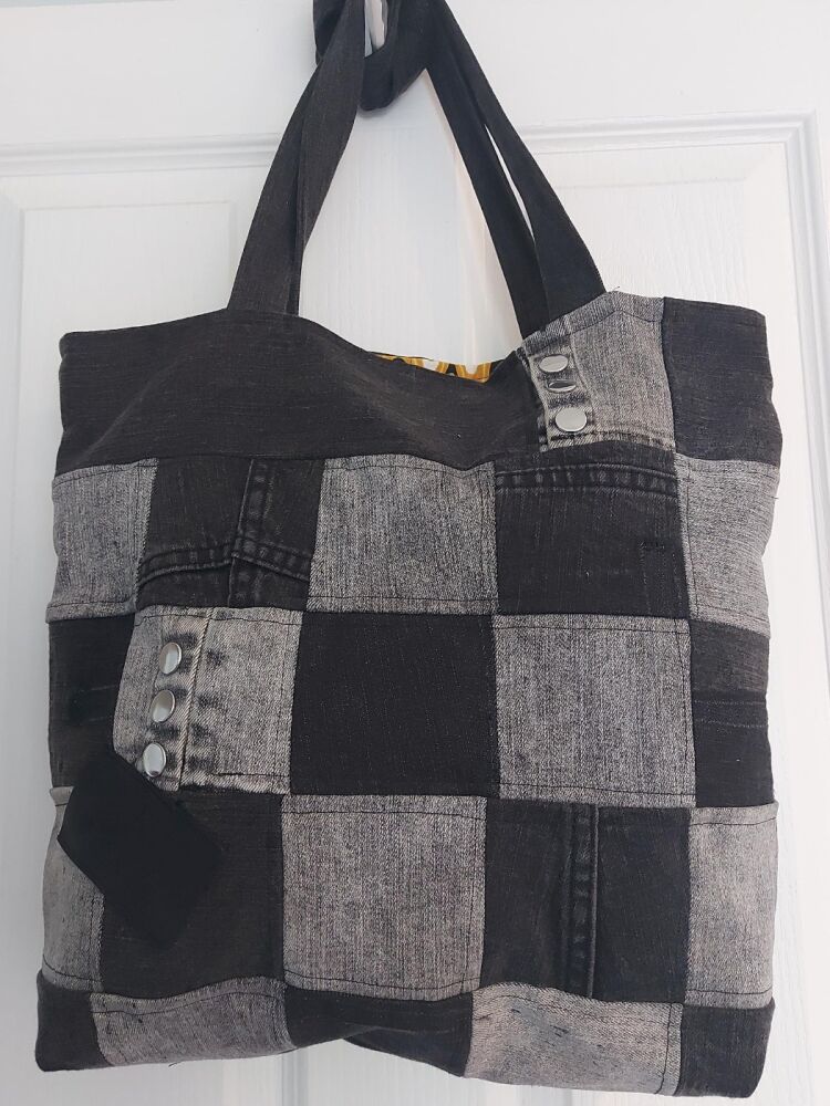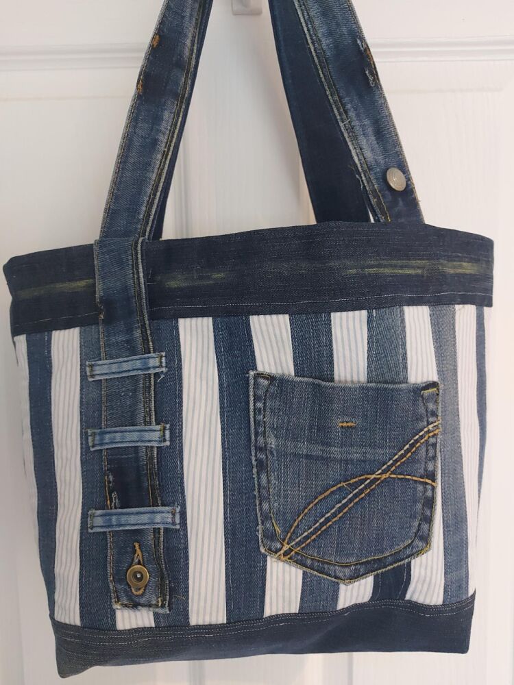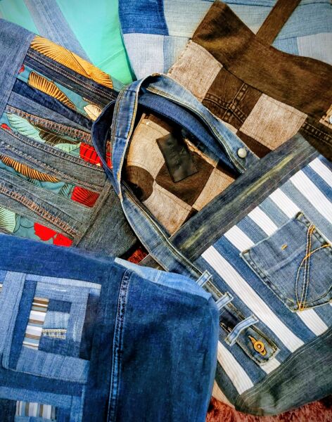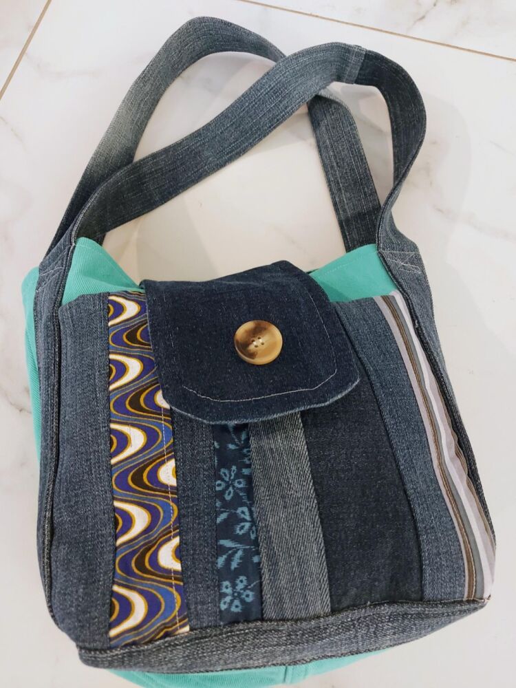 I up-cycle old denim and other materials into funky colourful bags and accessories. Cross body, handbags and tote bags.